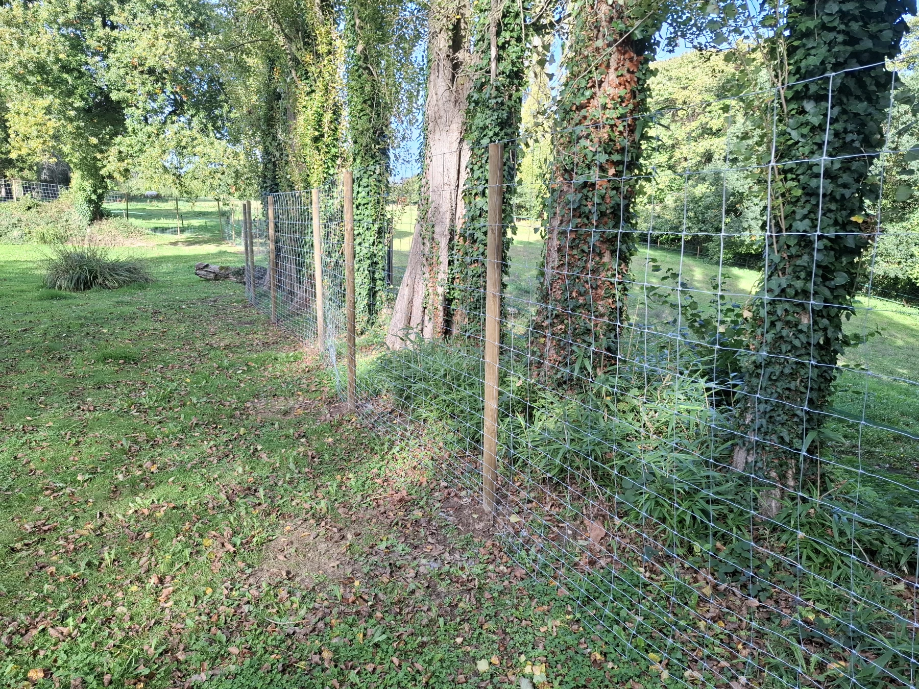 J'ai été chez une cliente pour clôturer sa propriété afin d'empêcher ses chiens de fuguer. Elle voulait un grillage de 2 mètre de haut, j'ai donc posé du grillage mouton et des poteaux en bois tout autour de la propriété, soit 300 mètres.